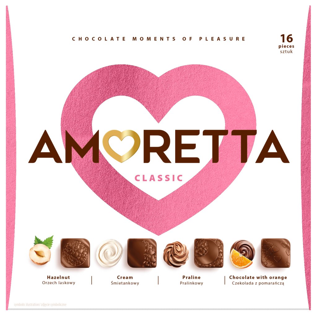Luxus megjelenésének és kompakt méretének (106 g) köszönhetően az Amoretta Classic tökéletes kis ünnepi ajándéknak , köszönetnyilvánításnak kollégáknak, vagy édes csemegeként délutáni kávé mellé.