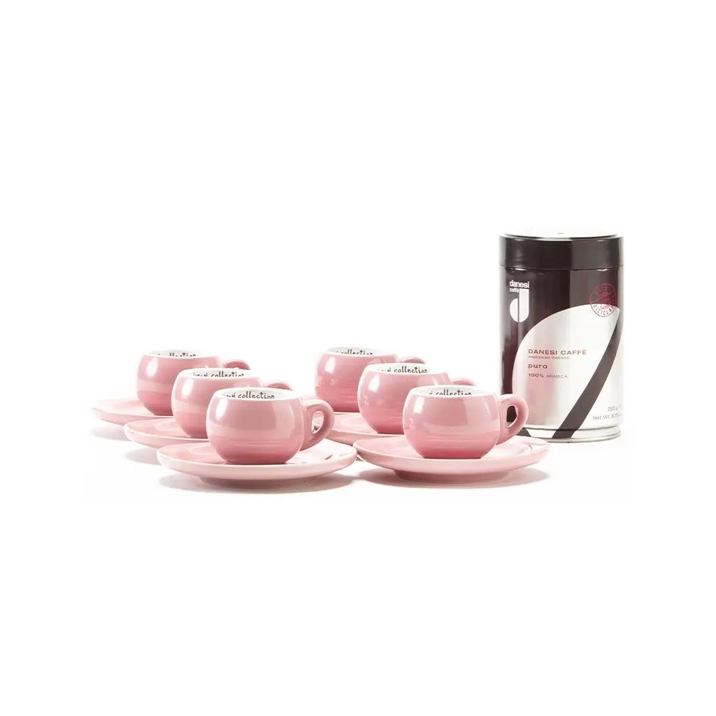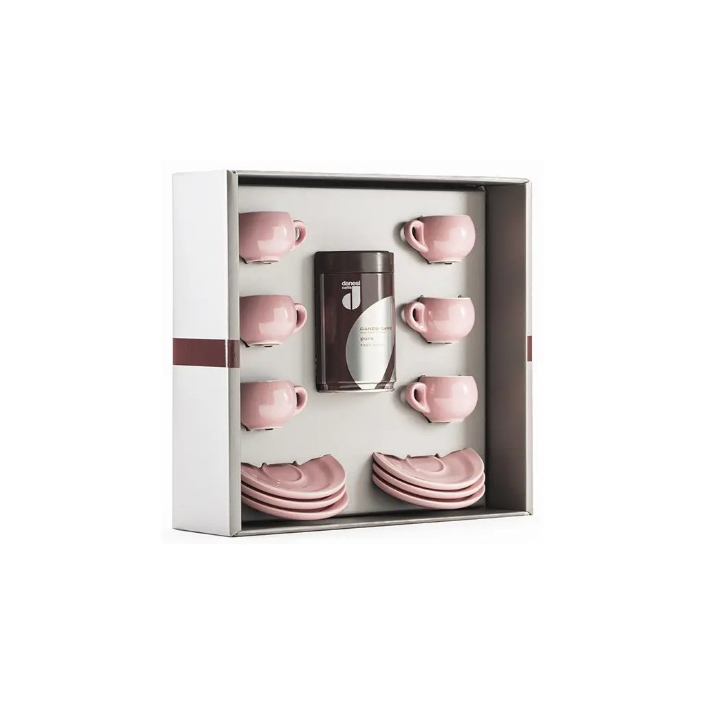 Danesi La Forma Sprint ajándékcsomag - Dark's Cassette Kava 250g + 6 eszpresszó csésze és 6 csészealj - rózsaszín