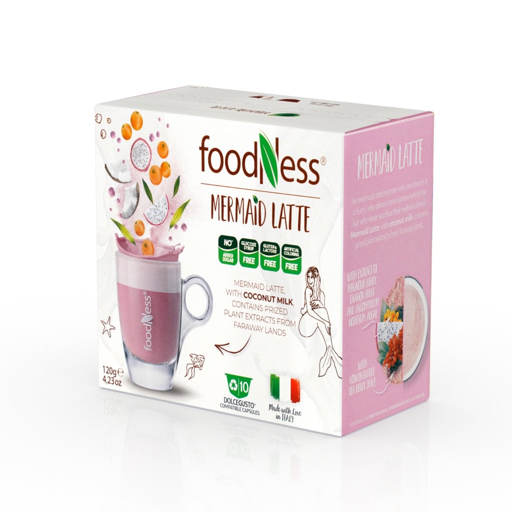 Dolce Gusto kompatibilis FoodNess Mermaid Latte kapszula 10 adag-os kiszerelésben.