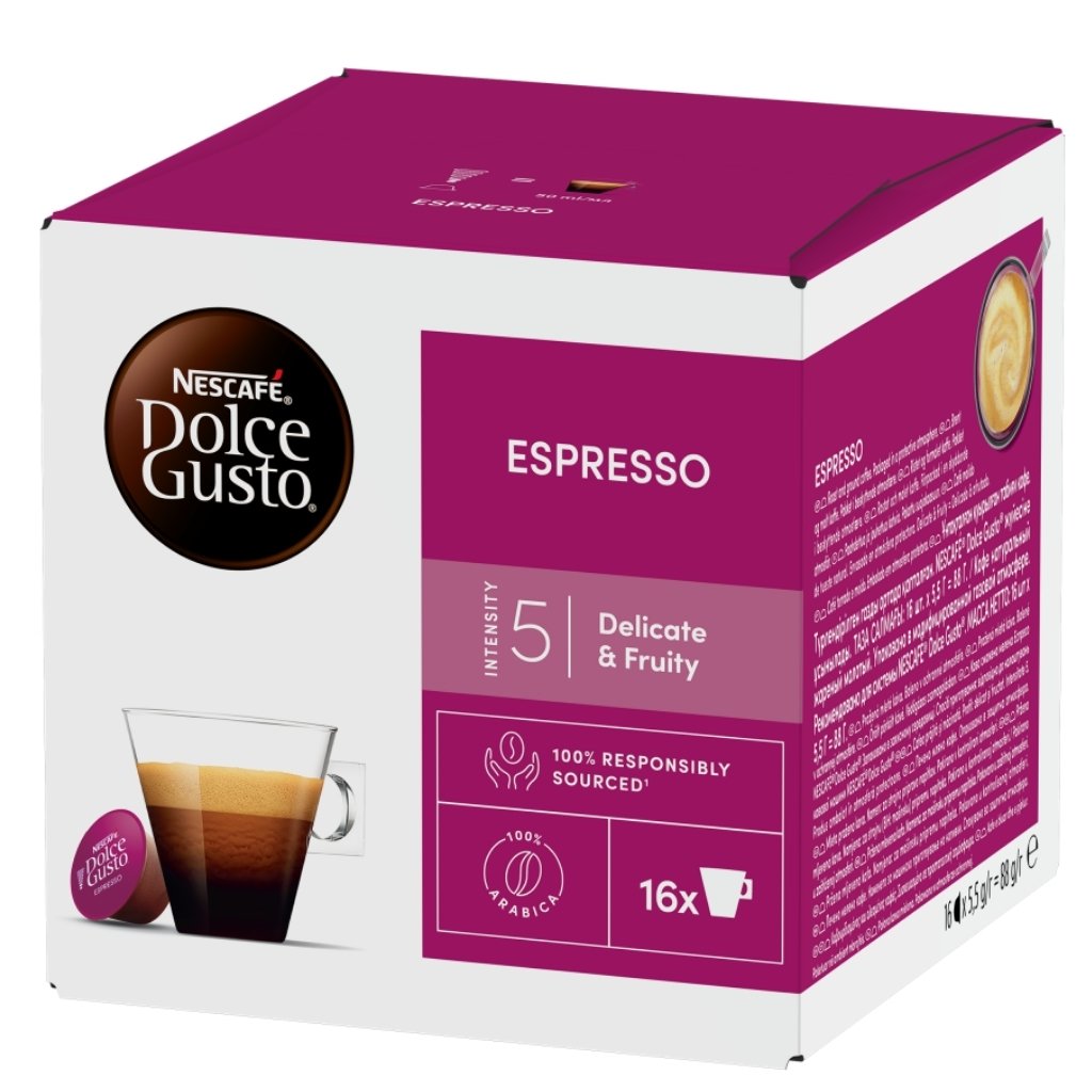 A doboz 16 db Dolce Gusto Nescafé Espresso kapszulát tartalmaz, így 16 alkalomra elegendő eszpresszót tudsz elkészíteni.