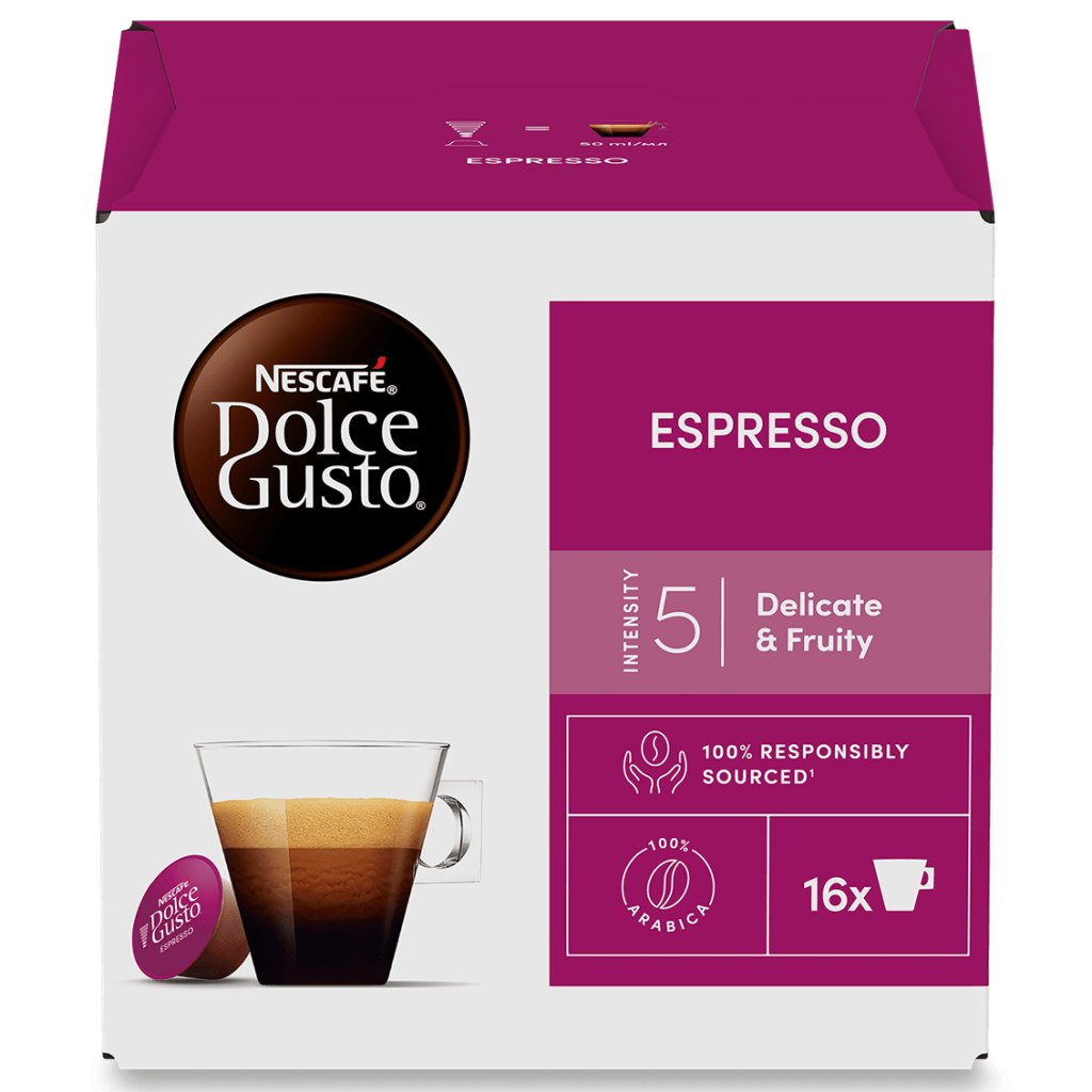 A Dolce Gusto Nescafé Espresso az egyik legismertebb és talán legnépszerűbb kávéfajta. A kávéimádók cukor, tejszín és tej nélkül fogyasztják, így megtapasztalhatják annak intenzív ízét és erejét.