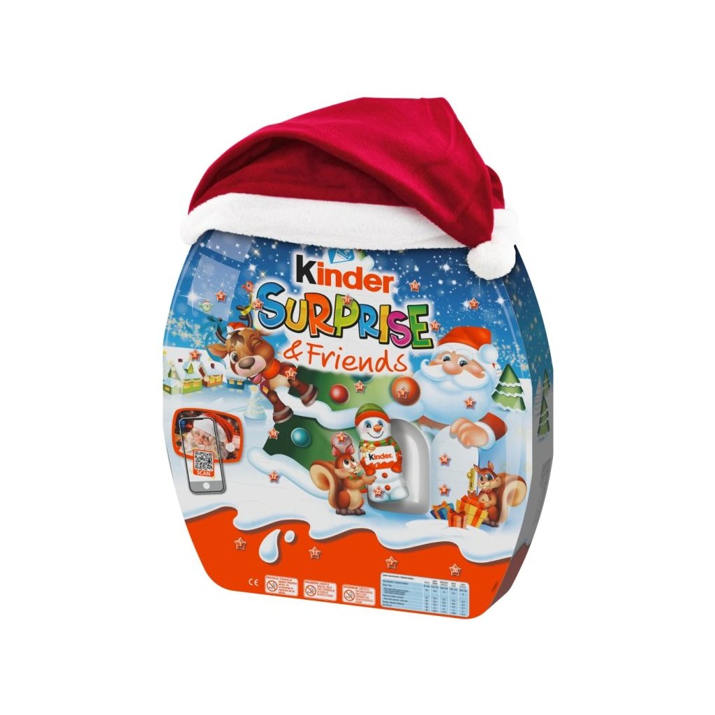 A Kinder Surprise & Friends adventi naptár tele van csokis meglepetésekkel. A karácsonyvárás hangulatát megkoronázza a naptárral együtt szállított manósapka, mely rugalmas élének köszönhetően minden méretű manó fejére passzol.