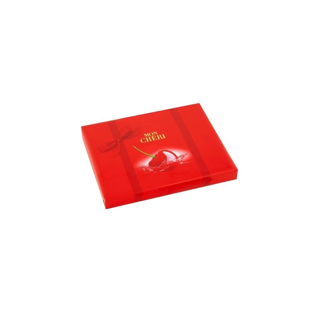 Csokoládé cukorkák likőrös töltelékkel és egész cseresznyével.