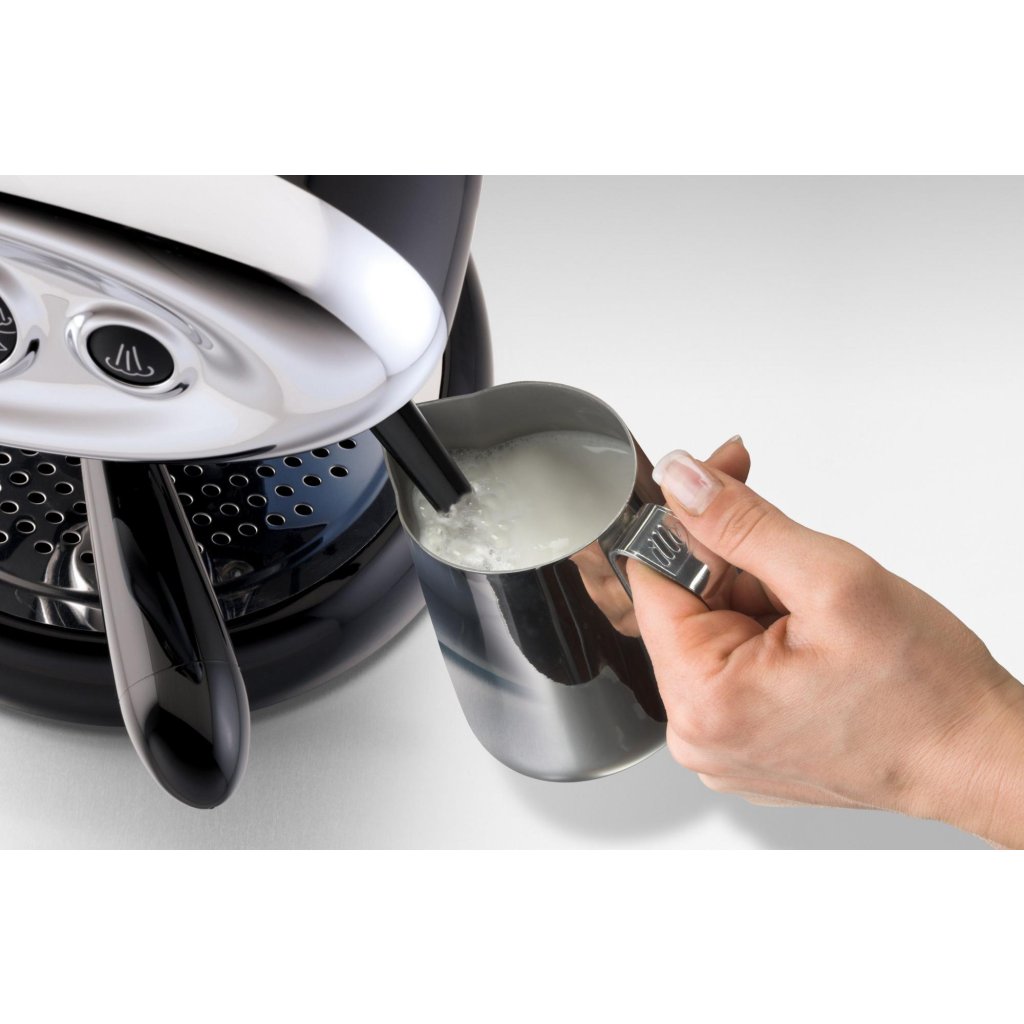 Nem tudsz elképzelni egy délutáni kávét lágy tejhab nélkül? Ezzel a kávéfőzővel készíthet például egy finom cappuccinót , a gőzfúvóka egy vagy két csészéhez elegendő tejet felver. Csak öntsön hideg tejet egy megfelelő edénybe, lehetőleg rozsdamentes acél vízforralóba, és merítse a gőzfúvókát a tejbe. Nyomja meg a gőz gombot, és várja meg, amíg a tej felverődik a kívánt eredményre. Ezután a gőzfúvókát alaposan meg kell tisztítani a maradék tejtől.