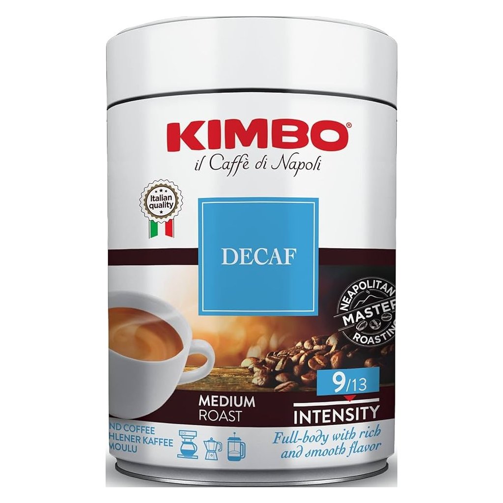A Kimbo koffeinmentes őrölt kávé nagyszerű kávét készít, gazdag aromával és teljes ízzel.