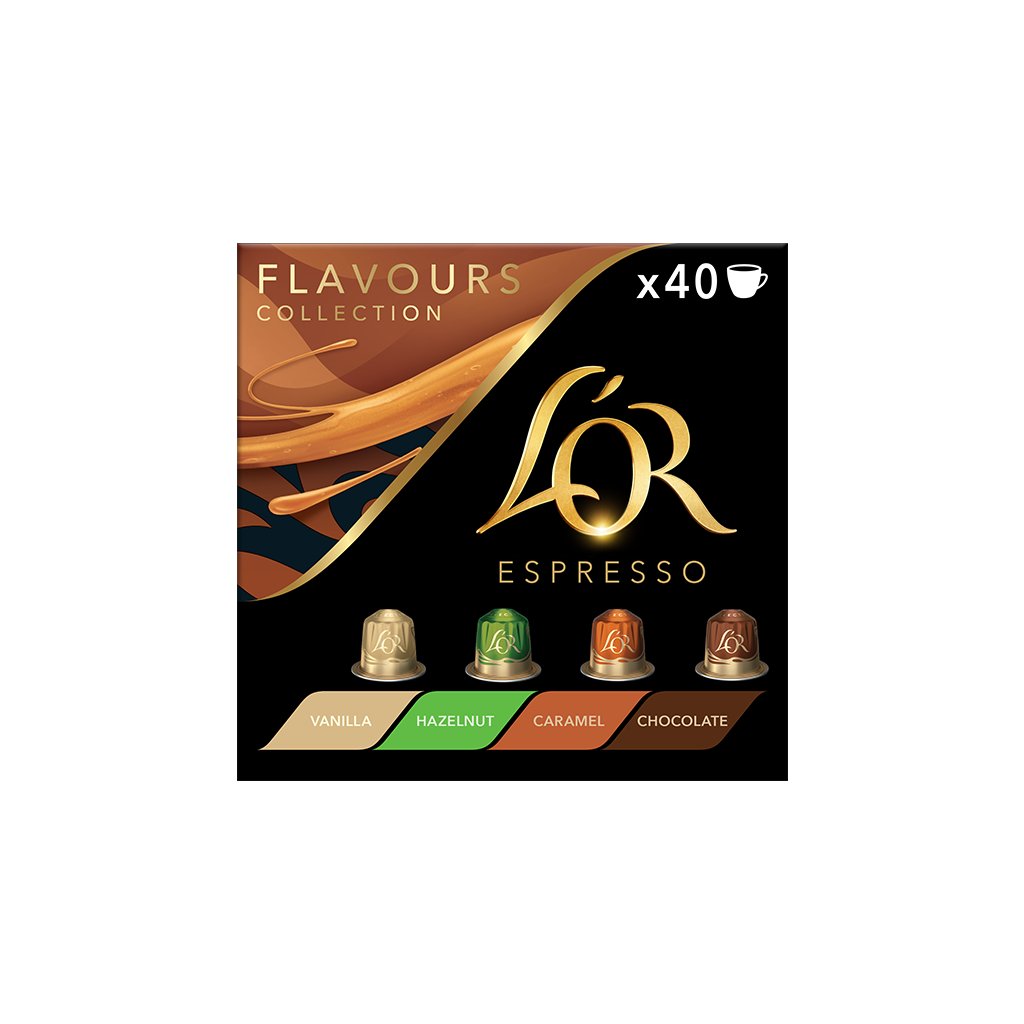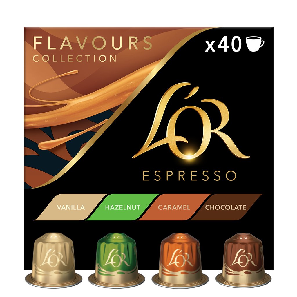 Fedezd fel az L'OR Flavours ízesített kapszulás kávékollekcióját, amely lágy eszpresszókat kínál vanília, karamell, csokoládé vagy mogyoró ízekkel. Minden változat egyedi ízt és aromát kínál, ideális alapként egy fekete eszpresszóhoz, bármilyen latte-hez, bársonyos cappuccinóhoz vagy latte macchiatóhoz.