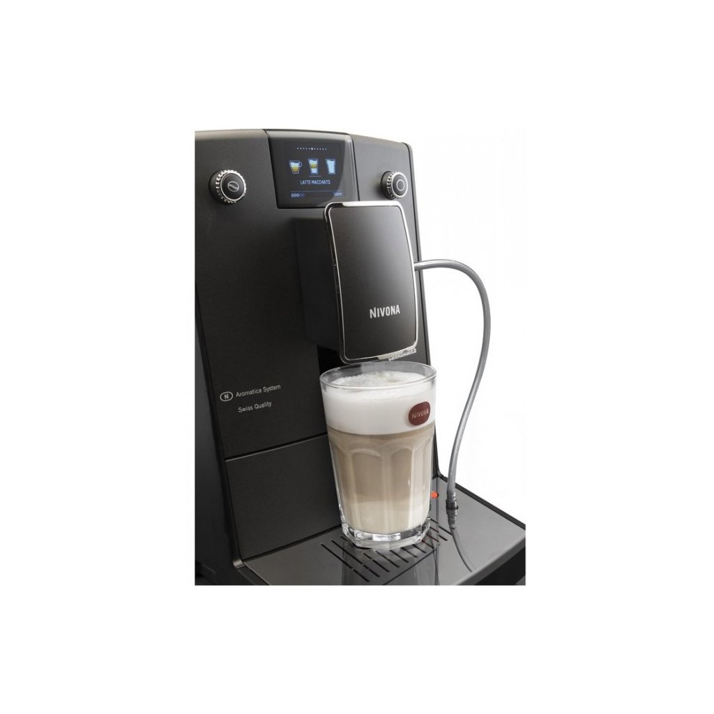 A NIVONA CafeRomatica NICR 758 kávéfőző a klasszikus eszpresszó és tejitalok kedvelőinek készült, amely az egyérintéses funkciónak köszönhetően egyszerűen, egyetlen gombnyomással elkészíthető. A tejitalok, például a cappuccino vagy a latte előállítását önfelszívó habzó fúvóka biztosítja, amely nemcsak gőzt, hanem forró vizet is képes termelni. A fúvóka közvetlenül a fejben található a kávéfúvókákkal együtt, így többé nem kell mozgatnia a poharat vagy a csészét. Nincs más dolga, mint a szívócsövet a tejbe mártani, és kiválasztani az italt.