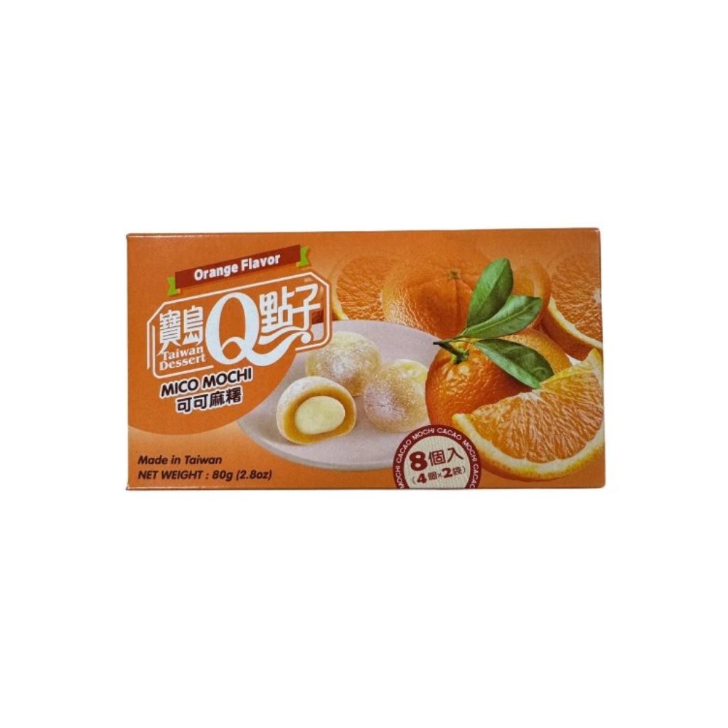 Fedezd fel az ázsiai édességek varázsát a Q Mochi Naranccsal . Ezek a finom, ragacsos rizslisztből készült sütemények egyedi "mochi-mochi" állagúak - puhák, rugalmasak és enyhén rágósak. Minden sütemény belsejében egy frissítő, lédús narancs ízű gyümölcstöltelék található, amely elkápráztatja a nem hagyományos desszertek szerelmeseit.