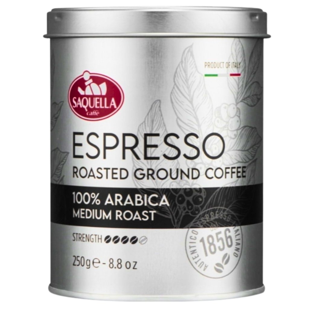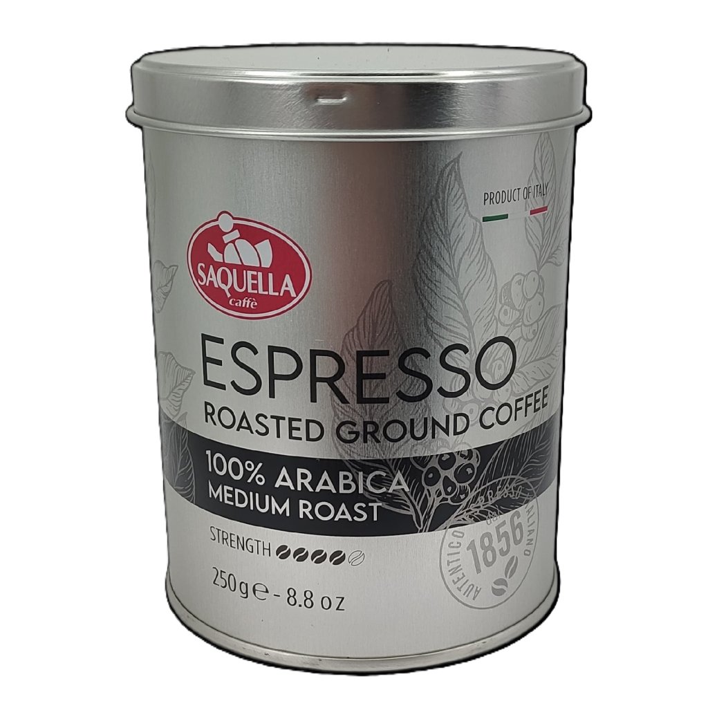 Saquella Espresso 100% Arabica Közepesen pörkölésű őrölt kávé dobozban 250g