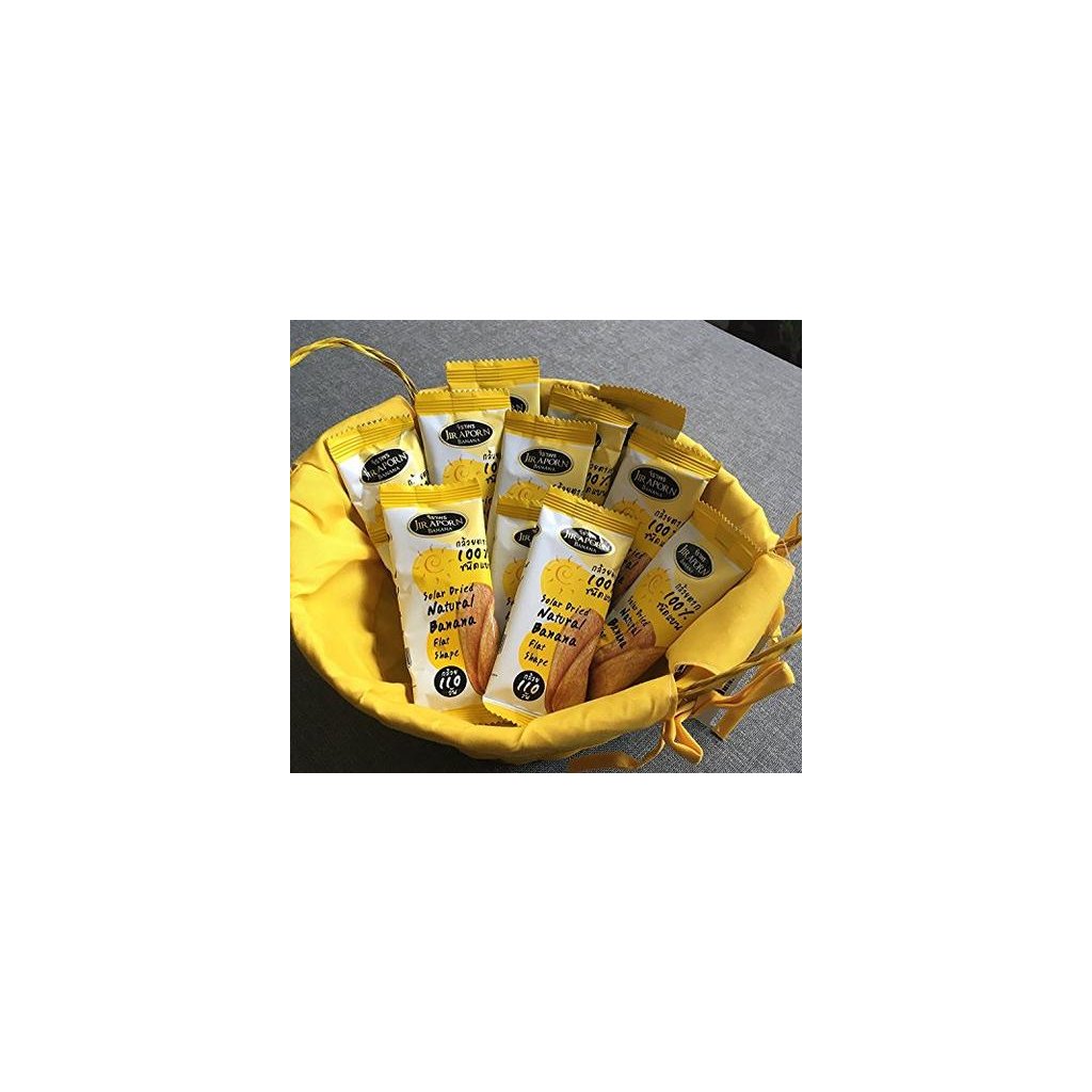 A Jir Aporn napon szárított természetes banán 100%-ban természetes, és olyan ízű, mint egy sült banán. Elég ritka, hogy közvetlenül az állványról vásároljunk mintavétel nélkül, és banánimádóként egy doboz 100%-ban természetes, napon szárított banánt túl ellenállhatatlannak találtam! Többé nem kell szembenéznem a túlérett, sötét foltokkal rendelkező banánnal! Remek snack, ha szereti a banánt.