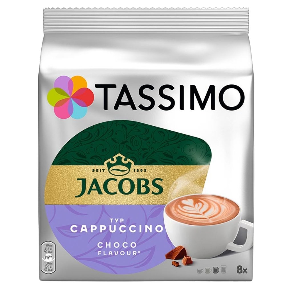 A Tassimo Jacobs Choco Cappuccino az intenzív eszpresszó, a kellemes csokoládé íz és a tejhab édes, krémes rétegének ízletes kombinációja – kávé Mokka stílusban.