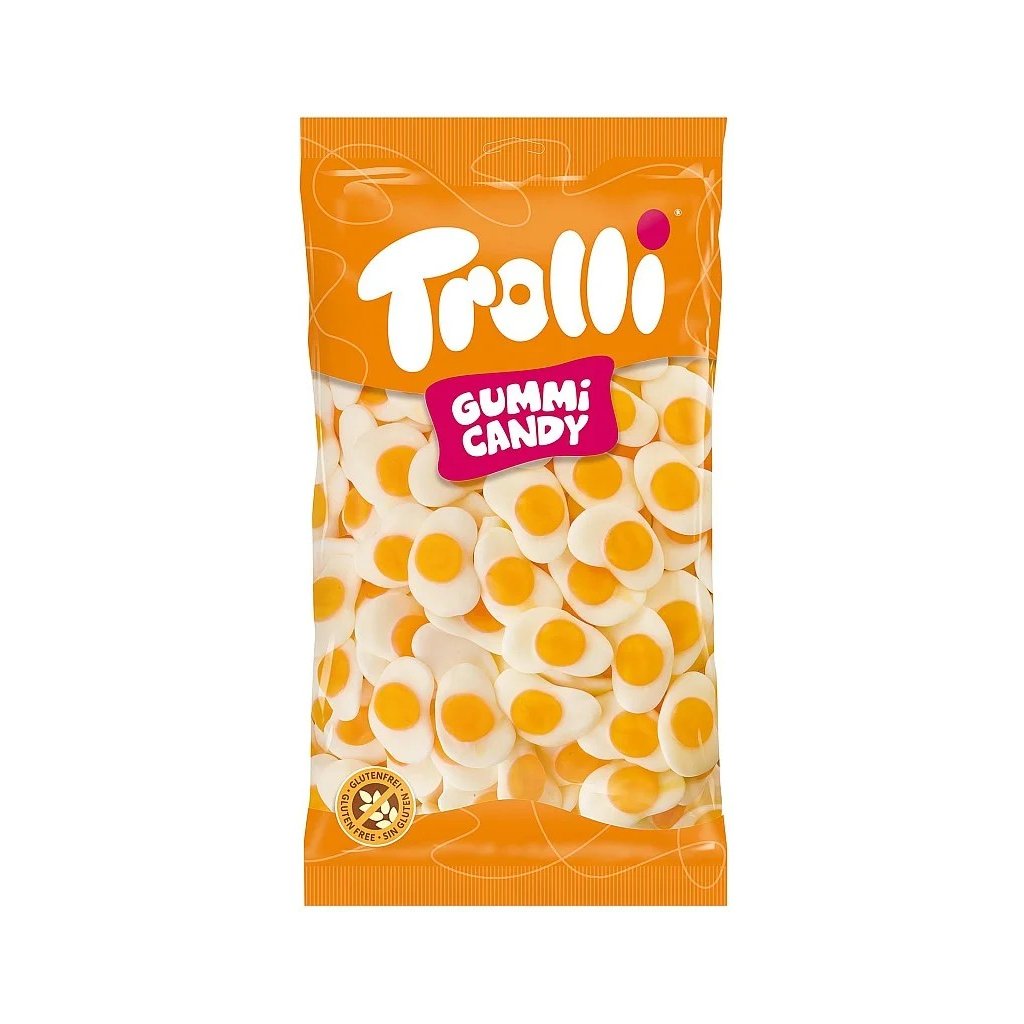 Ezek a céltábla alakú gumicukrok abszolút klasszikusok, amelyek nem hiányozhatnak egyetlen jó cukorkakínálatból sem. A Trolli gumicukortojás a "fehér" puha, habos textúráját ötvözi a "sárgáját" jelképező gyümölcsös, zselészerű közepével.