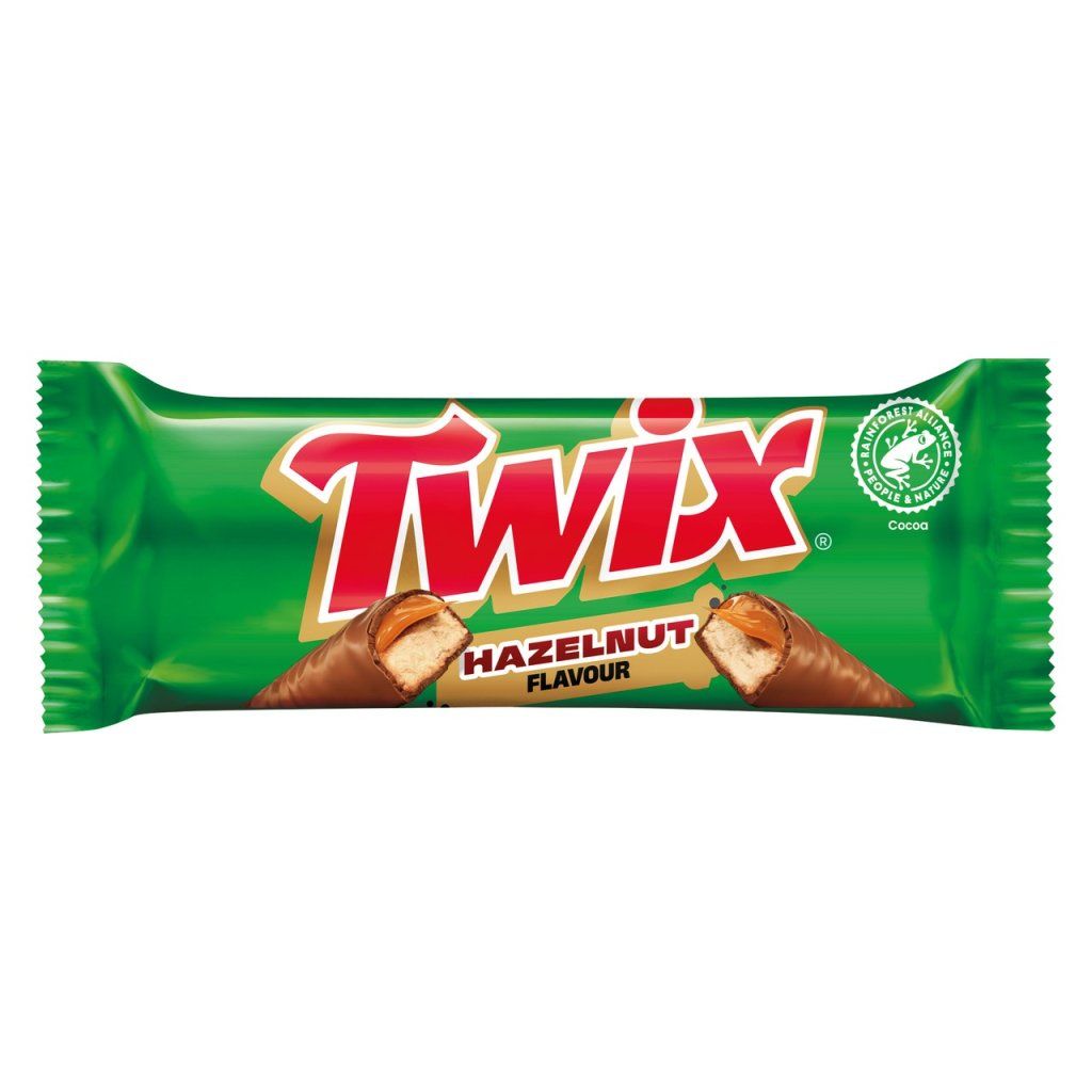 Finom Twix keksz (26%), karamell bevonattal (32%), mogyoró ízű tejcsokoládéval (35%) bevonva.