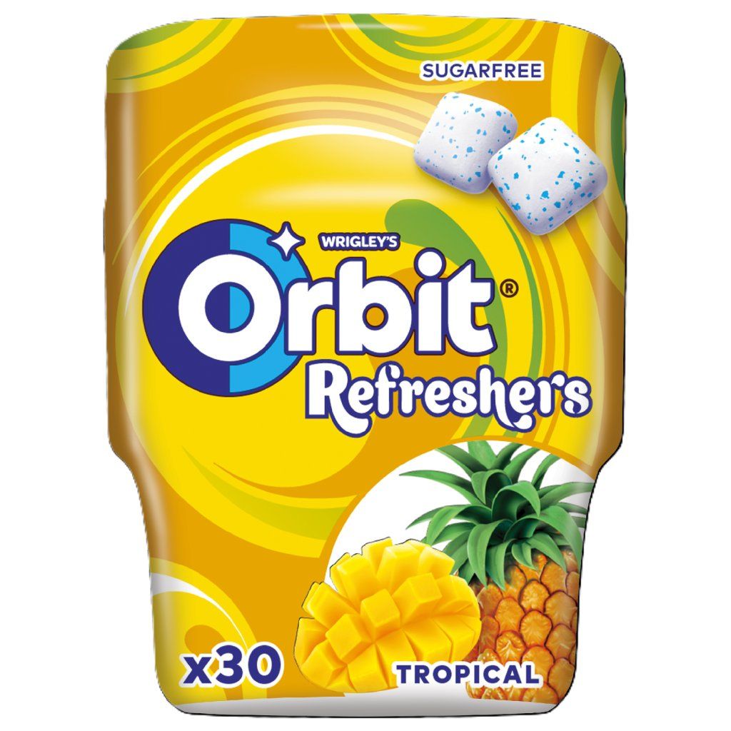 Éld át a napsütötte trópusi paradicsomot minden falattal! Az Orbit Refreshers Tropical gumicukor egzotikus ízrobbanást kínál, az édes mangót és a lédús ananászt ötvözve. Ezek a népszerű gumicukrok nagyobb, puhább kockák formájában intenzív felfrissülést és hosszan tartó ízélményt nyújtanak, mindezt hozzáadott cukor nélkül .