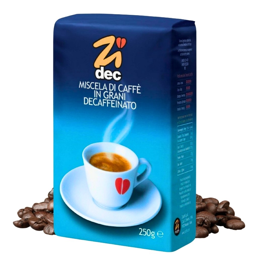 A "Zidec" kávé egy nagyon aromás, koffeinmentes keverék, mivel a legmagasabb minőségű kávékból készül. Bármennyiszer fogyaszthatja, mivel nem tartalmaz 0,10%-nál több koffeint. Frissen csomagolják vákuumzáras tasakokba, amelyek megőrzik aromáját.